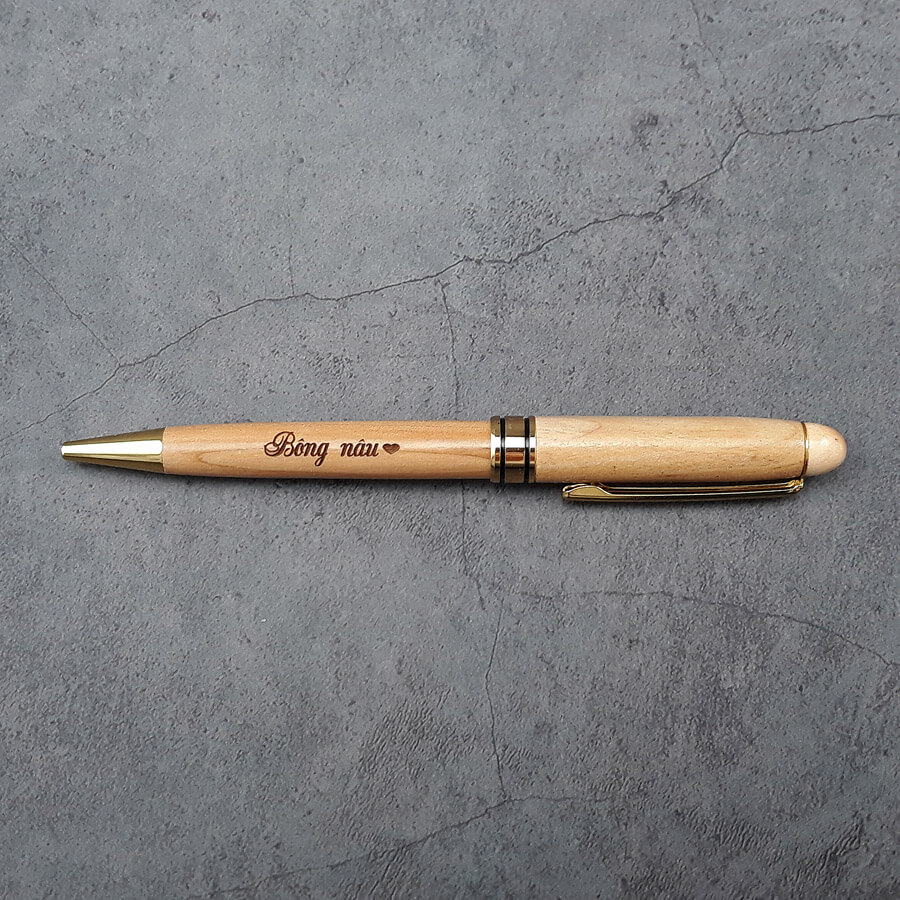 Bút màu vàng nhạt. Bút gỗ maple là dòng bút gỗ khắc chữ bán chạy nhất tại Danh Laser.