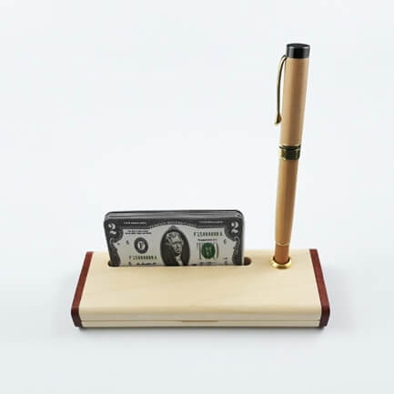 Hộp bút gỗ maple, kích thước: dài x rộng x cao: 16 x 5.4 x 2 (cm), có rãnh đựng card, có lỗ để cắm bút. Thích hợp để trên bàn làm việc.