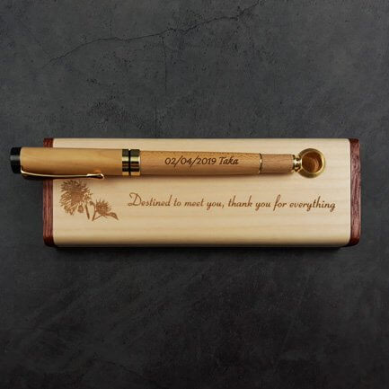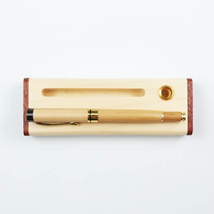 Combo CBB01 gồm: bút gỗ maple nắp đậy BG01 và hộp bút gỗ maple có rãnh.