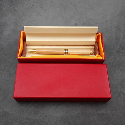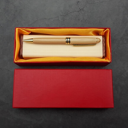 Bút làm từ gỗ maple cao cấp. Bên cạnh đó, còn có các chi tiết mạ kim loại trên thân bút.