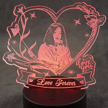 Bộ sản phẩm gồm: đế đèn, miếng mica (acrylic), dây cáp USB, remote điều khiển từ xa.