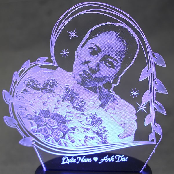 Đèn LED khắc theo yêu cầu - Mẫu trái tim 04