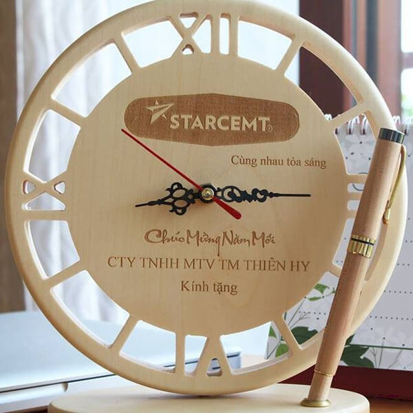 Đồng hồ gỗ khắc laser DH04 là một trong những dòng sản phẩm bán chạy nhất tại Danh Laser. Được làm từ gỗ maple nguyên khối. Gồm 2 phần: đồng hồ chữ La Mã và phần đế (có thể dùng để cắm bút).