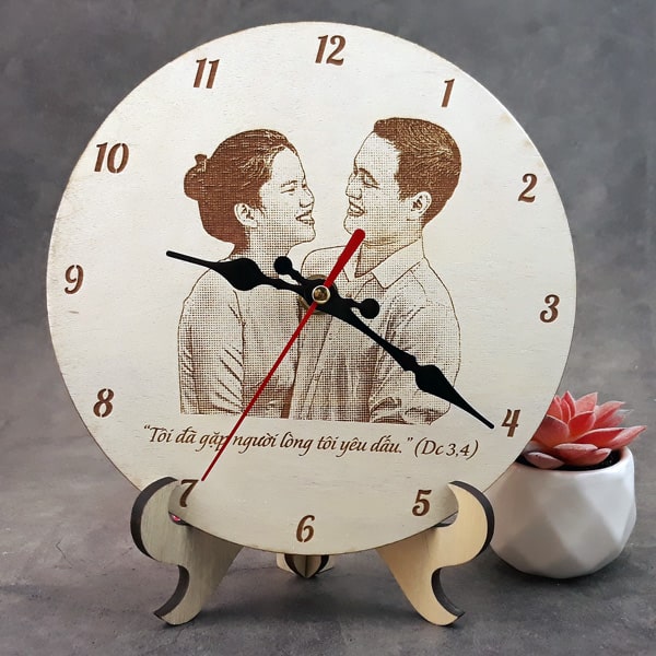 Đồng hồ là món quà tặng phổ biến mỗi khi dịp sinh nhật, giáng sinh, kỷ niệm,... Đặc biệt với đồng hồ gỗ khắc hình, vừa hàm ý trân trọng thời gian, vừa lưu lại những hình ảnh đáng nhớ.