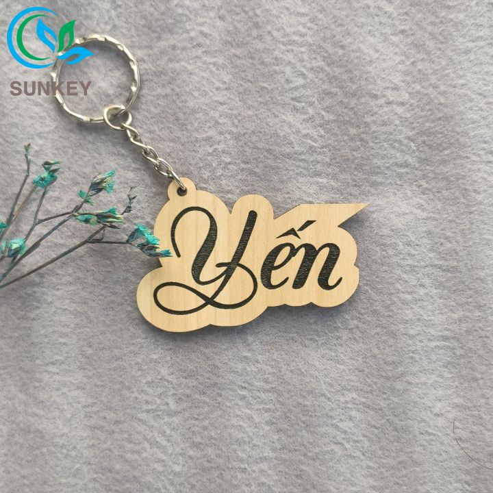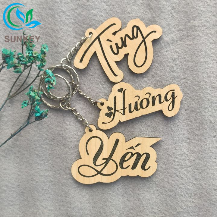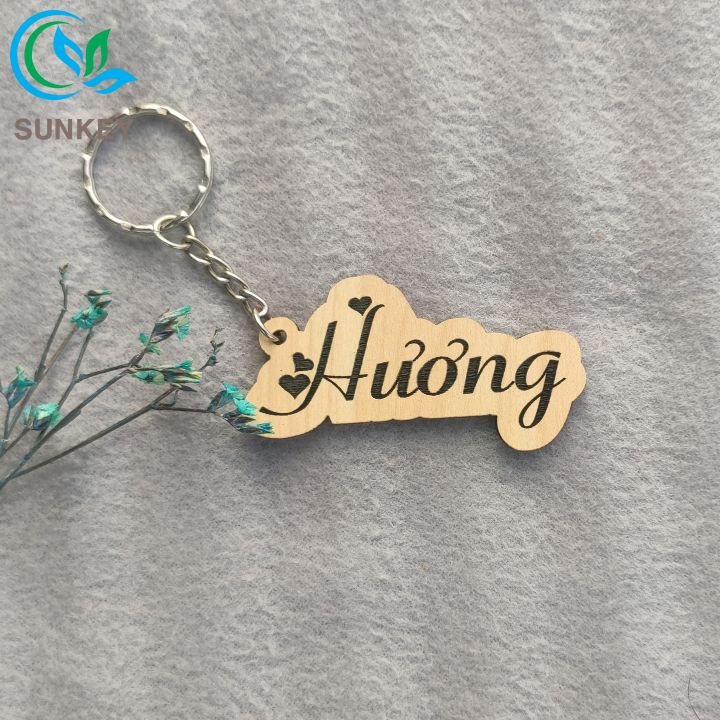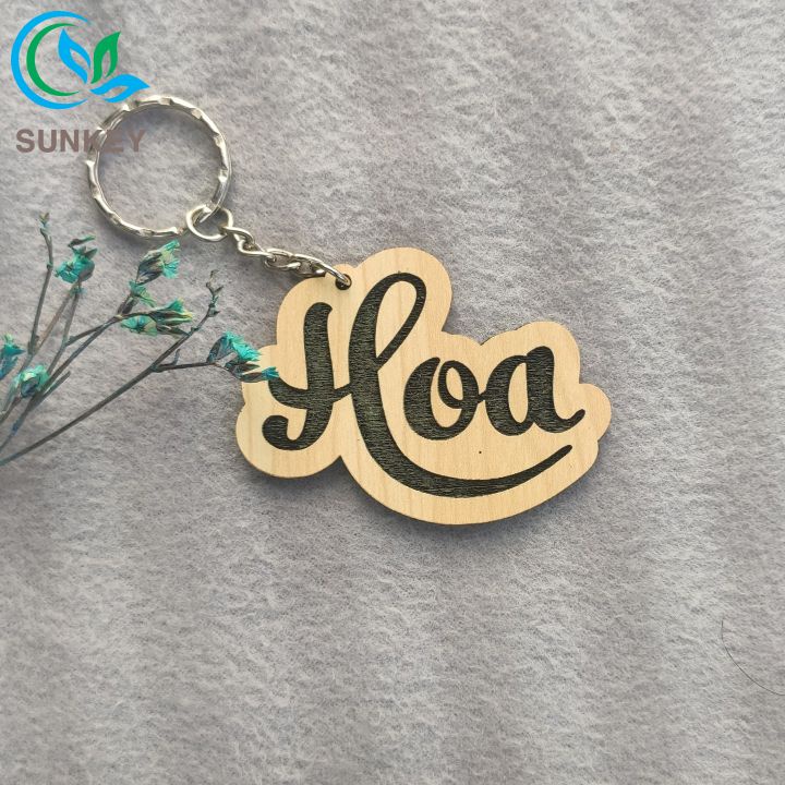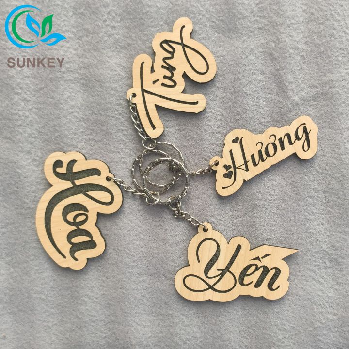 Móc khóa gỗ được sản xuất từ gỗ MDF nhập khẩu, sử dụng công nghệ cắt khắc Laser tinh xảo