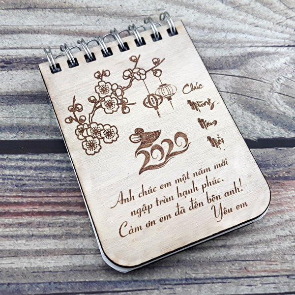 2 mặt bìa là gỗ, có thể khắc hình / chữ tùy thích.